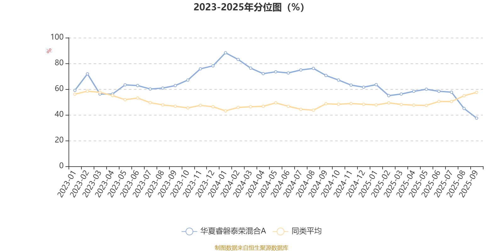 通过所选区间该基金净值增长率分位图,可以观察该基金与同类基金业绩比较情况。图为坐标原点到区间内某时点的净值增长率在同类基金中的分位数。