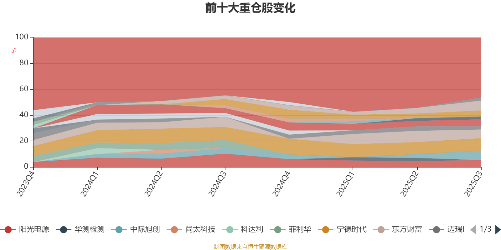 截至2025年三季度末,基金十大重仓股分别是宁德时代、新易盛、中际旭创、东方财富、湖南裕能、阳光电源、亿纬锂能、迈瑞医疗、温氏股份、锦浪科技。