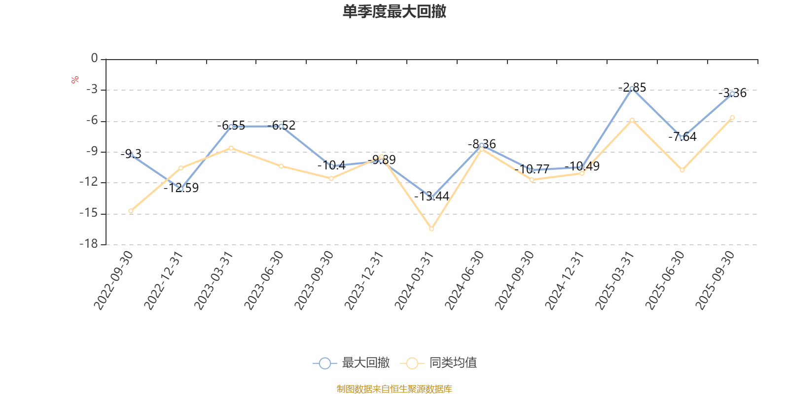 截至10月28日,基金近三年最大回撤为29.73%,同类可比基金排名119/513。单季度最大回撤出现在2024年一季度,为13.44%。