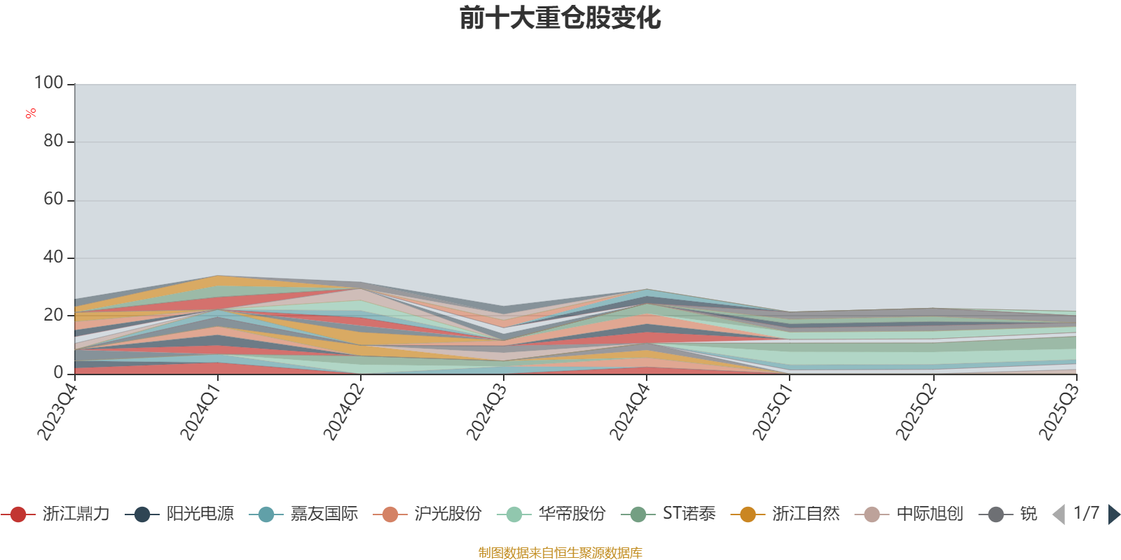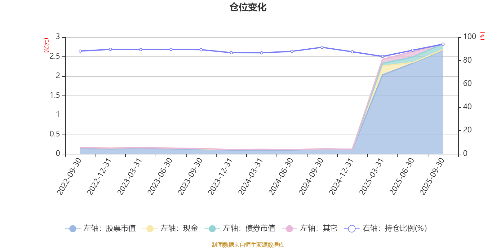 据定期报告数据统计,近三年平均股票仓位为88.69%,同类平均为85.66%。2025年三季度末基金达到94.04%的最高仓位,2025年一季度末最低,为83.54%。
