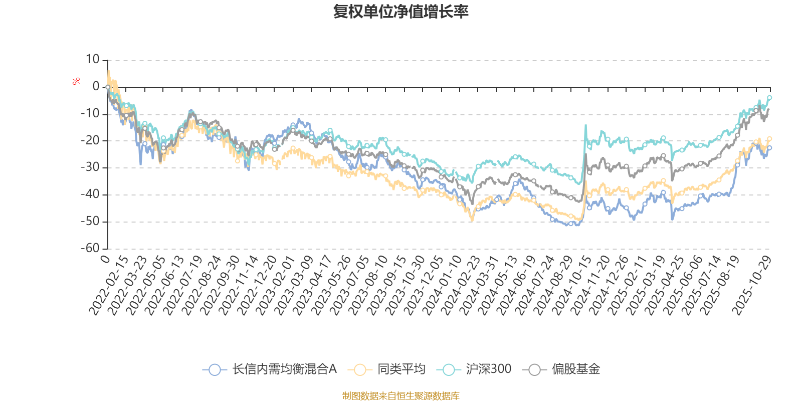 截至10月29日,长信内需均衡混合A近三个月复权单位净值增长率为27.05%,位于同类可比基金102/621;近半年复权单位净值增长率为39.31%,位于同类可比基金172/621;近一年复权单位净值增长率为35.87%,位于同类可比基金247/611;近三年复权单位净值增长率为11.31%,位于同类可比基金324/518。