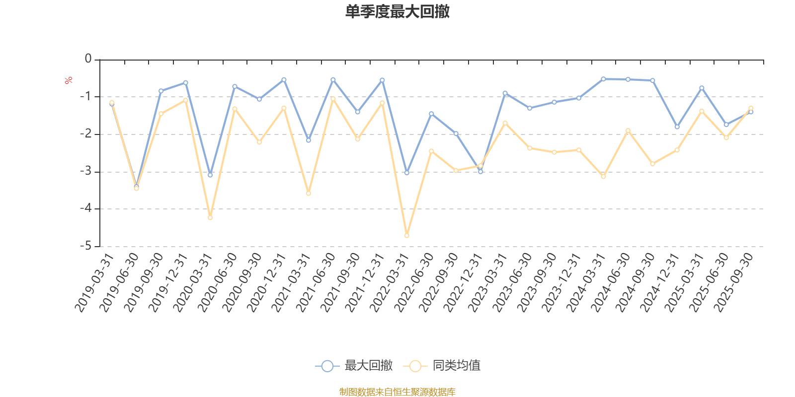 通过所选区间该基金净值增长率分位图,可以观察该基金与同类基金业绩比较情况。图为坐标原点到区间内某时点的净值增长率在同类基金中的分位数。