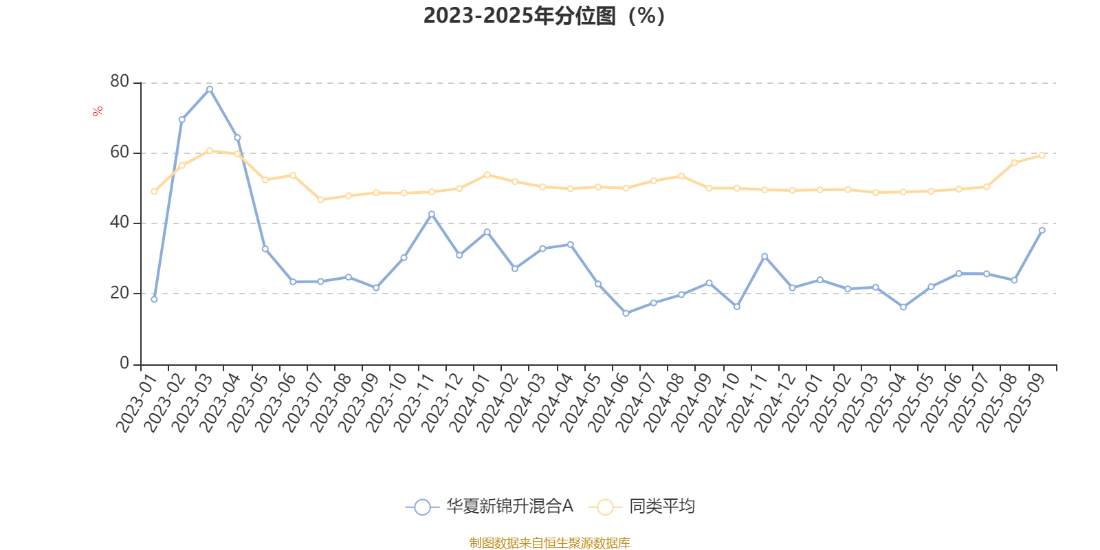 通过所选区间该基金净值增长率分位图,可以观察该基金与同类基金业绩比较情况。图为坐标原点到区间内某时点的净值增长率在同类基金中的分位数。