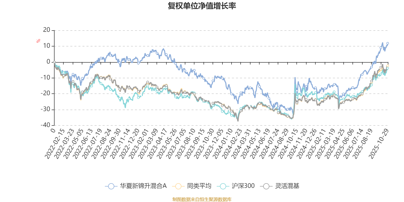 截至10月29日,华夏新锦升混合A近三个月复权单位净值增长率为18.98%,位于同类可比基金409/1287;近半年复权单位净值增长率为42.01%,位于同类可比基金269/1287;近一年复权单位净值增长率为34.63%,位于同类可比基金393/1287;近三年复权单位净值增长率为12.13%,位于同类可比基金767/1286。