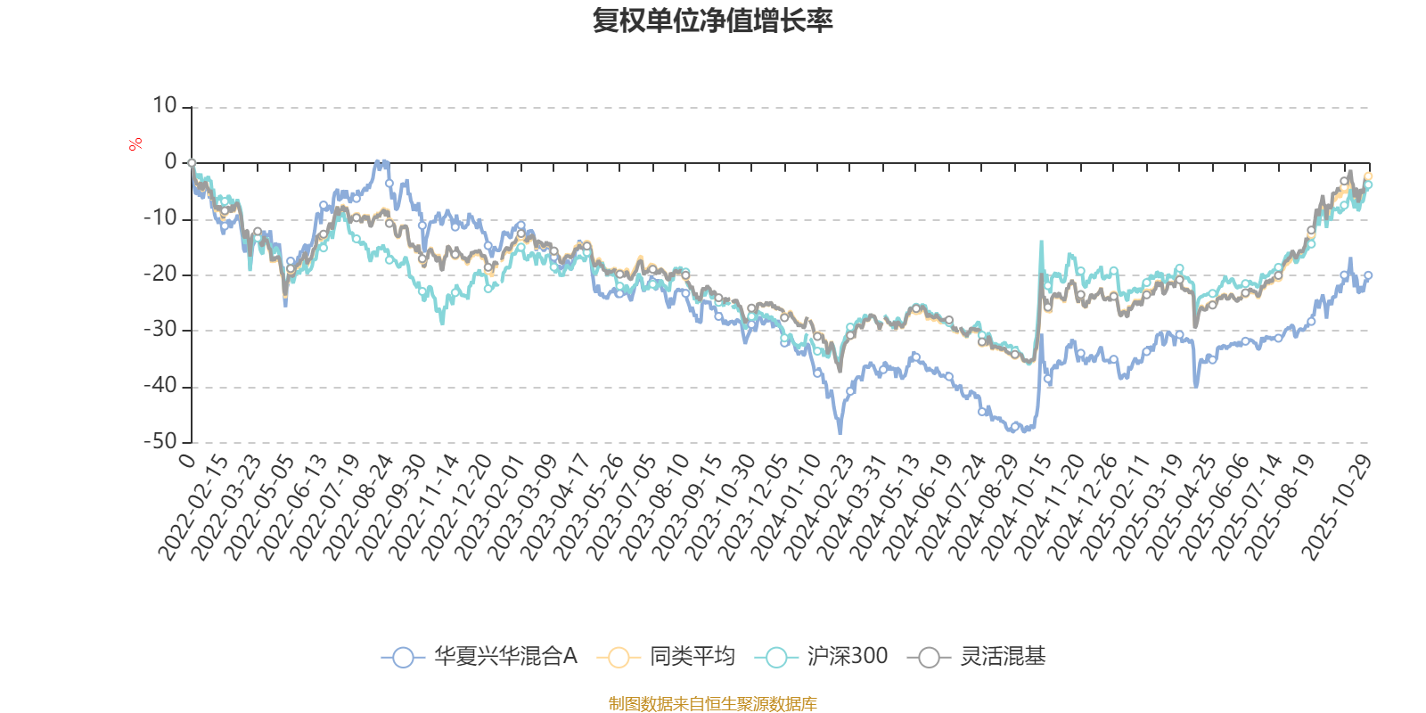 截至10月29日,华夏兴华混合A近三个月复权单位净值增长率为12.57%,位于同类可比基金631/1287;近半年复权单位净值增长率为23.15%,位于同类可比基金693/1287;近一年复权单位净值增长率为24.68%,位于同类可比基金620/1287;近三年复权单位净值增长率为-10.12%,位于同类可比基金1159/1286。