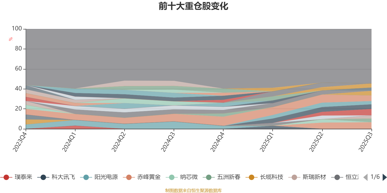 截至2025年三季度末,基金十大重仓股分别是赤峰黄金、紫金矿业、宁德时代、东方财富、北方华创、恒瑞医药、五洲新春、安集科技、通威股份、斯瑞新材。