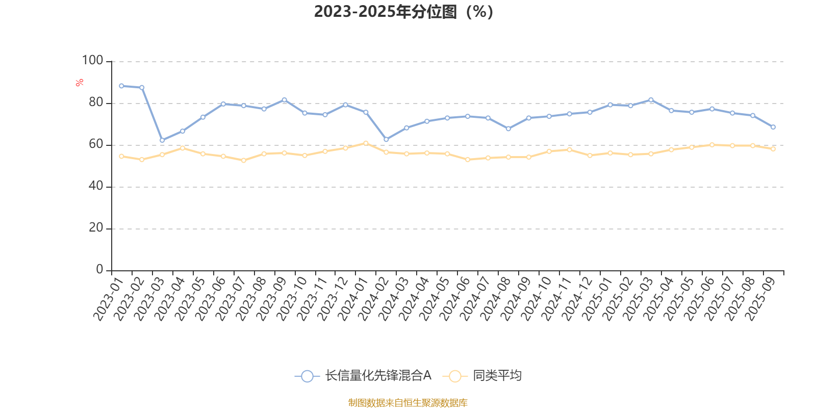 通过所选区间该基金净值增长率分位图,可以观察该基金与同类基金业绩比较情况。图为坐标原点到区间内某时点的净值增长率在同类基金中的分位数。