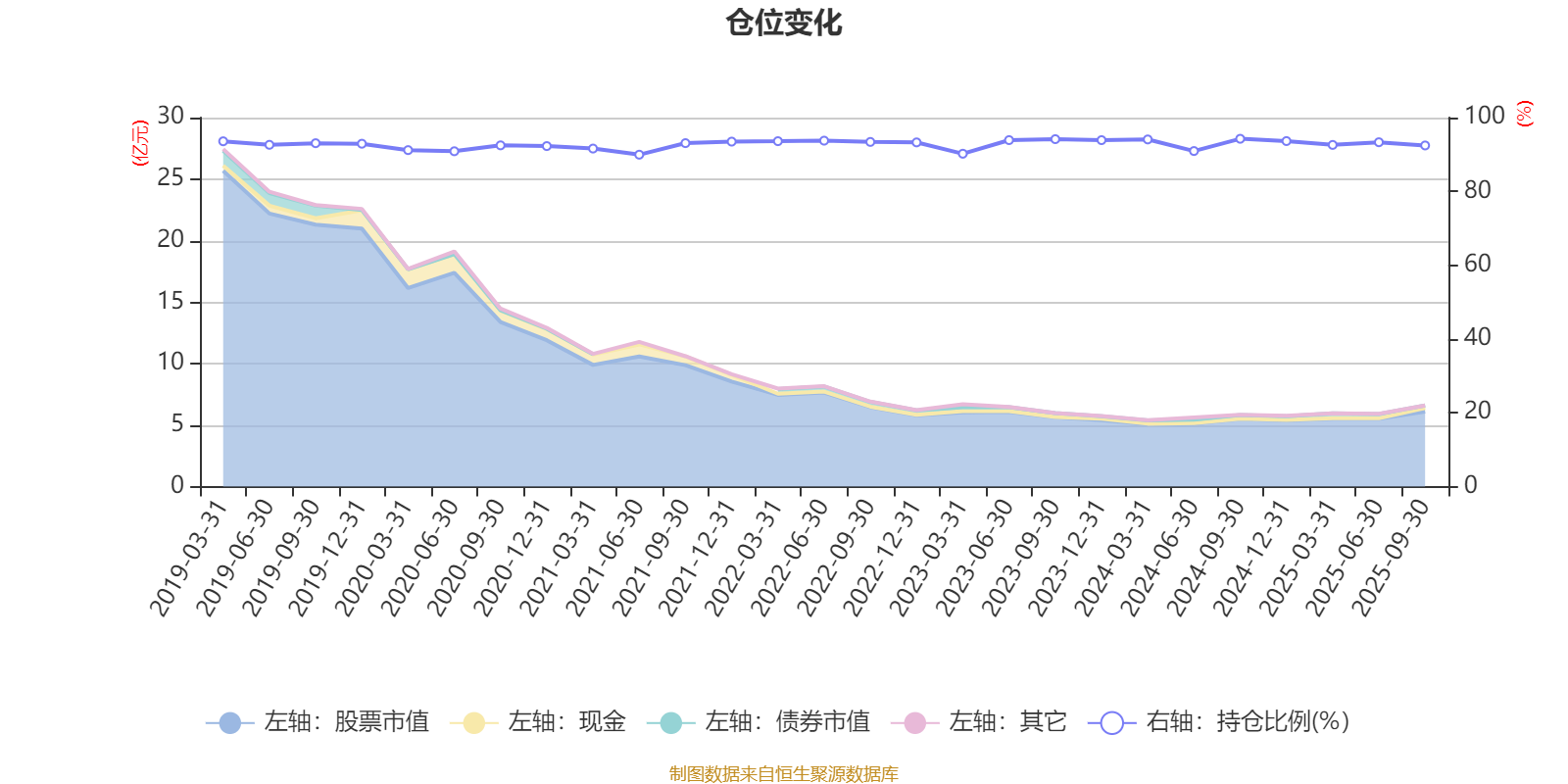 据定期报告数据统计,近三年平均股票仓位为93.06%,同类平均为85.99%。2024年三季度末基金达到94.26%的最高仓位,2021年上半年末最低,为89.95%。