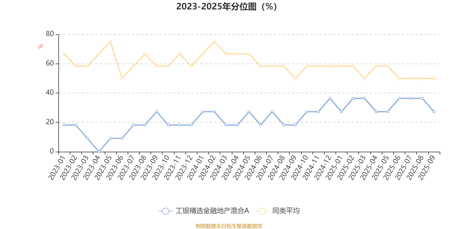 通过所选区间该基金净值增长率分位图,可以观察该基金与同类基金业绩比较情况。图为坐标原点到区间内某时点的净值增长率在同类基金中的分位数。