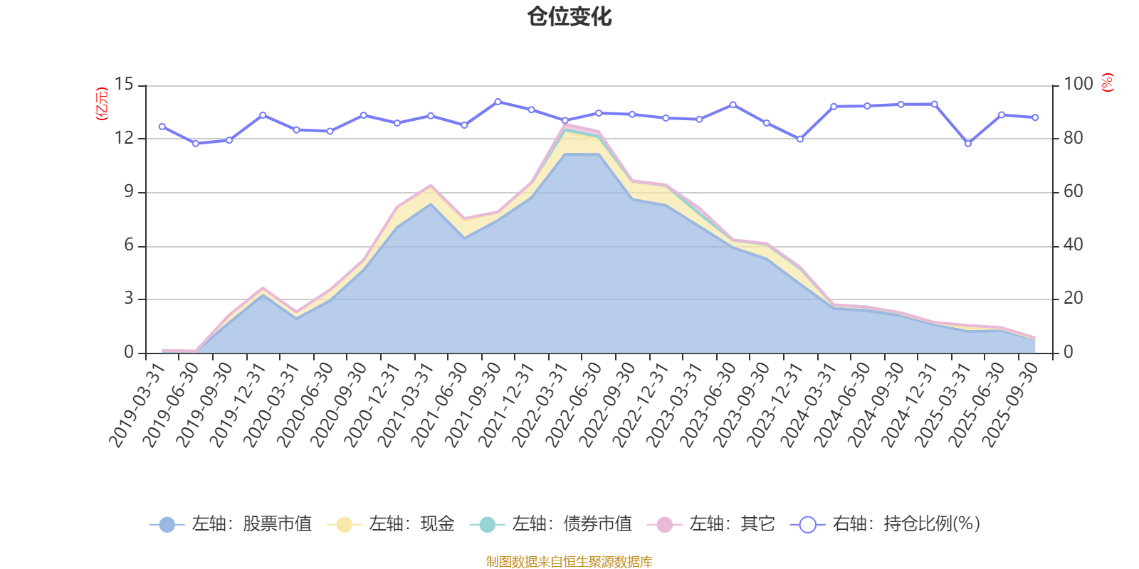 据定期报告数据统计,近三年平均股票仓位为88.27%,同类平均为87.15%。2021年三季度末基金达到93.89%的最高仓位,2025年一季度末最低,为78.26%。