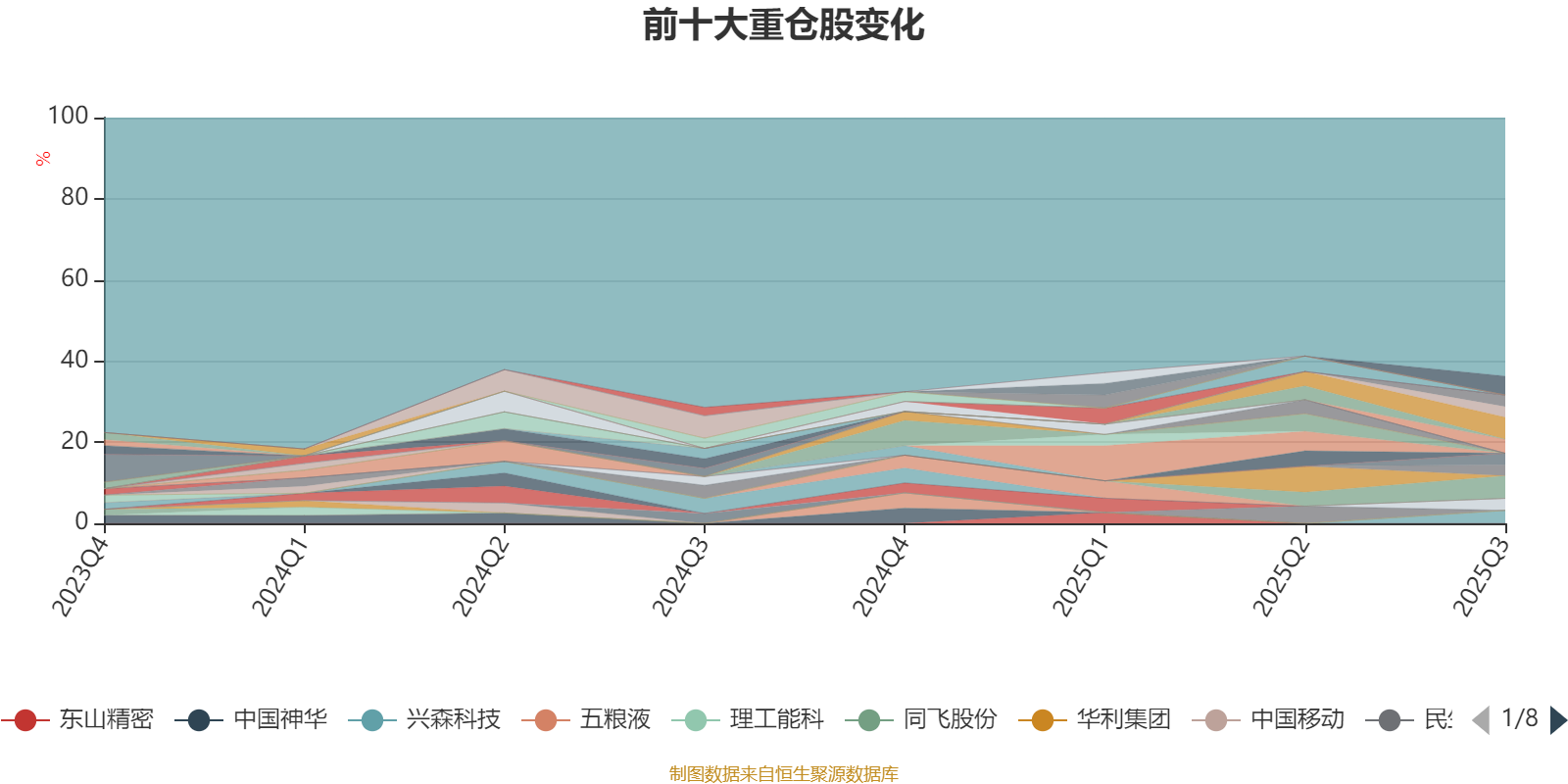 基金管理人在三季报中表示,资产配置上,本季度组合权益仓位略有下降,但仍维持高位。权益资产内部,主要减配银行,增配传媒、电子以及电力设备等科技方向。后续资产配置拟偏向权益,权益资产重点关注科技方向,挖掘高端产业自主可控、人工智能创新等领域的投资机会;同时关注回调后具备性价比的红利资产。债券资产等待调整后的投资机会。