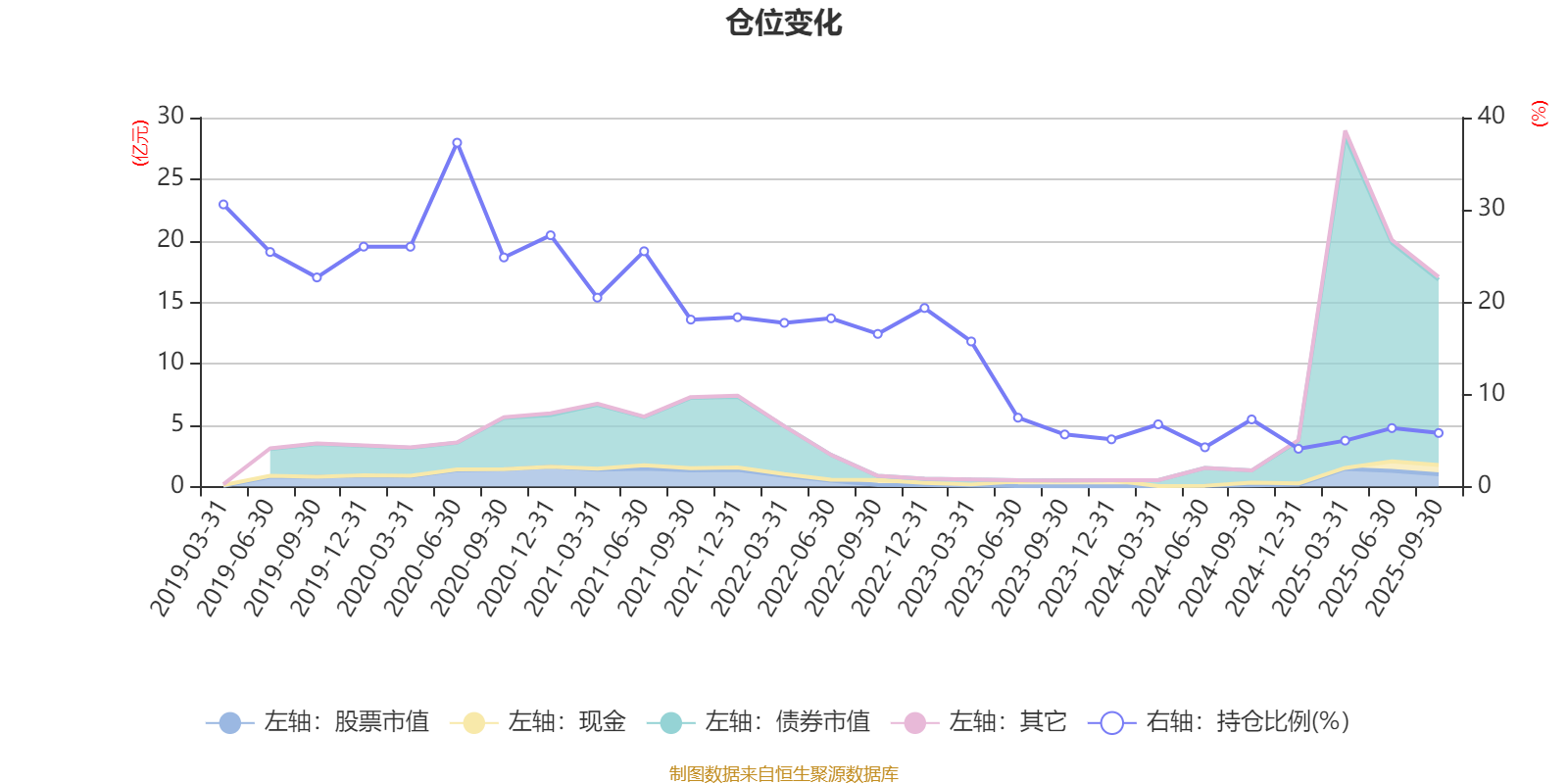 据定期报告数据统计,近三年平均股票仓位为7.74%,同类平均为72.28%。2020年上半年末基金达到37.28%的最高仓位,2024年末最低,为4.1%。