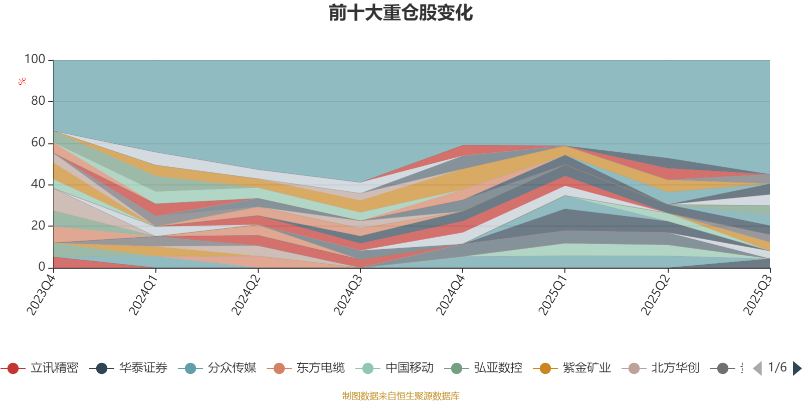 截至2025年三季度末,基金十大重仓股分别是工业富联、山东黄金、海光信息、能特科技、歌尔股份、华泰证券、恒瑞医药、华海清科、英科医疗、芯原股份。