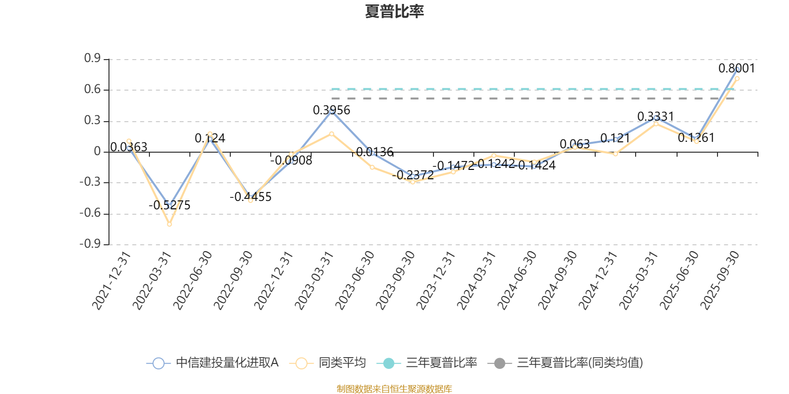 截至9月30日,基金近三年夏普比率为0.6098,位于同类可比基金201/518。
