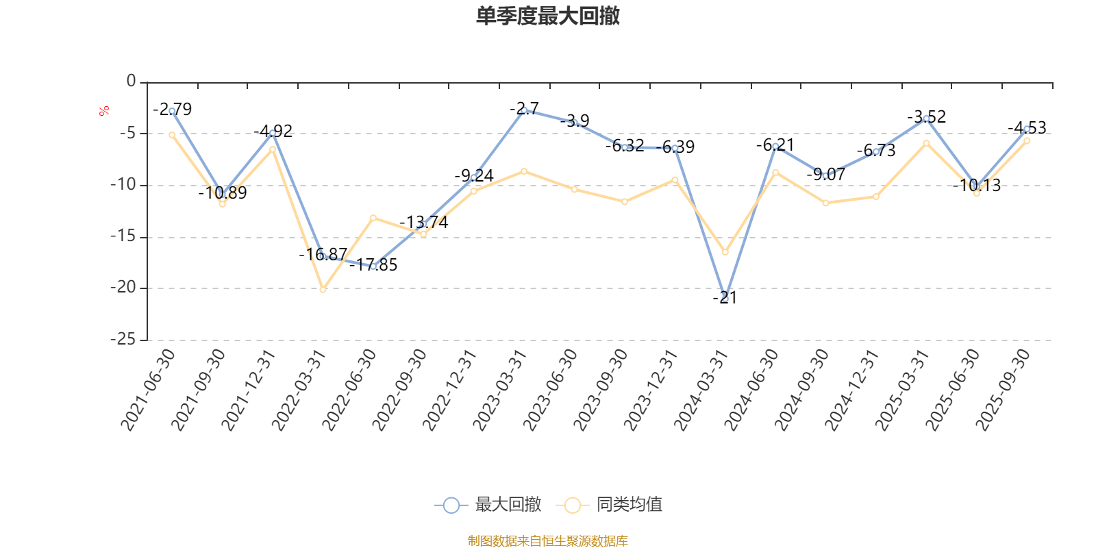 截至10月29日,基金近三年最大回撤为26.8%,同类可比基金排名65/513。单季度最大回撤出现在2024年一季度,为21%。
