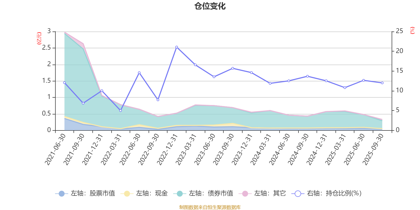 据定期报告数据统计,近三年平均股票仓位为13.96%,同类平均为19.14%。2022年末基金达到21.07%的最高仓位,2022年一季度末最低,为5%。