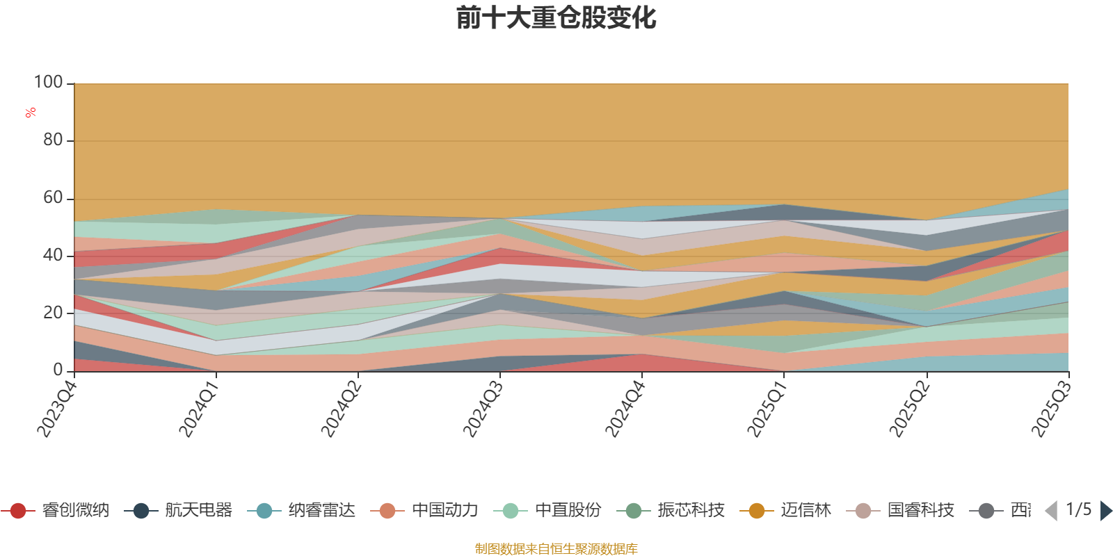 该基金持股集中度较高。截至2025年三季度末,基金十大重仓股分别是鸿远电子、火炬电子、高德红外、中国动力、臻镭科技、纳睿雷达、盟升电子、振芯科技、中直股份、菲利华。