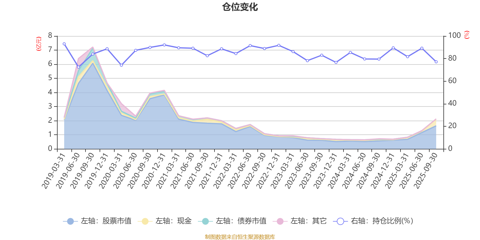 据定期报告数据统计,近三年平均股票仓位为83.16%,同类平均为72.35%。2019年一季度末基金达到93.06%的最高仓位,2019年上半年末最低,为72.47%。