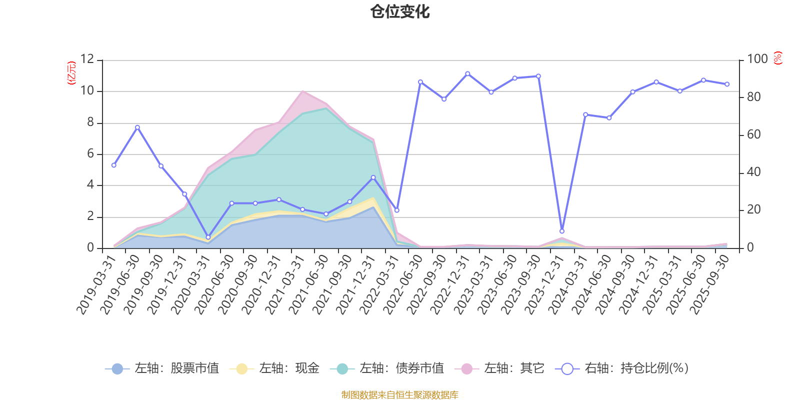 据定期报告数据统计,近三年平均股票仓位为78.17%,同类平均为72.35%。2022年末基金达到92.73%的最高仓位,2020年一季度末最低,为5.85%。