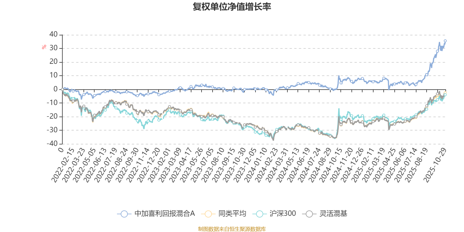 截至10月29日,中加喜利回报混合A近三个月复权单位净值增长率为27.25%,位于同类可比基金220/1287;近半年复权单位净值增长率为30.72%,位于同类可比基金483/1287;近一年复权单位净值增长率为26.36%,位于同类可比基金582/1287;近三年复权单位净值增长率为42.14%,位于同类可比基金235/1286。