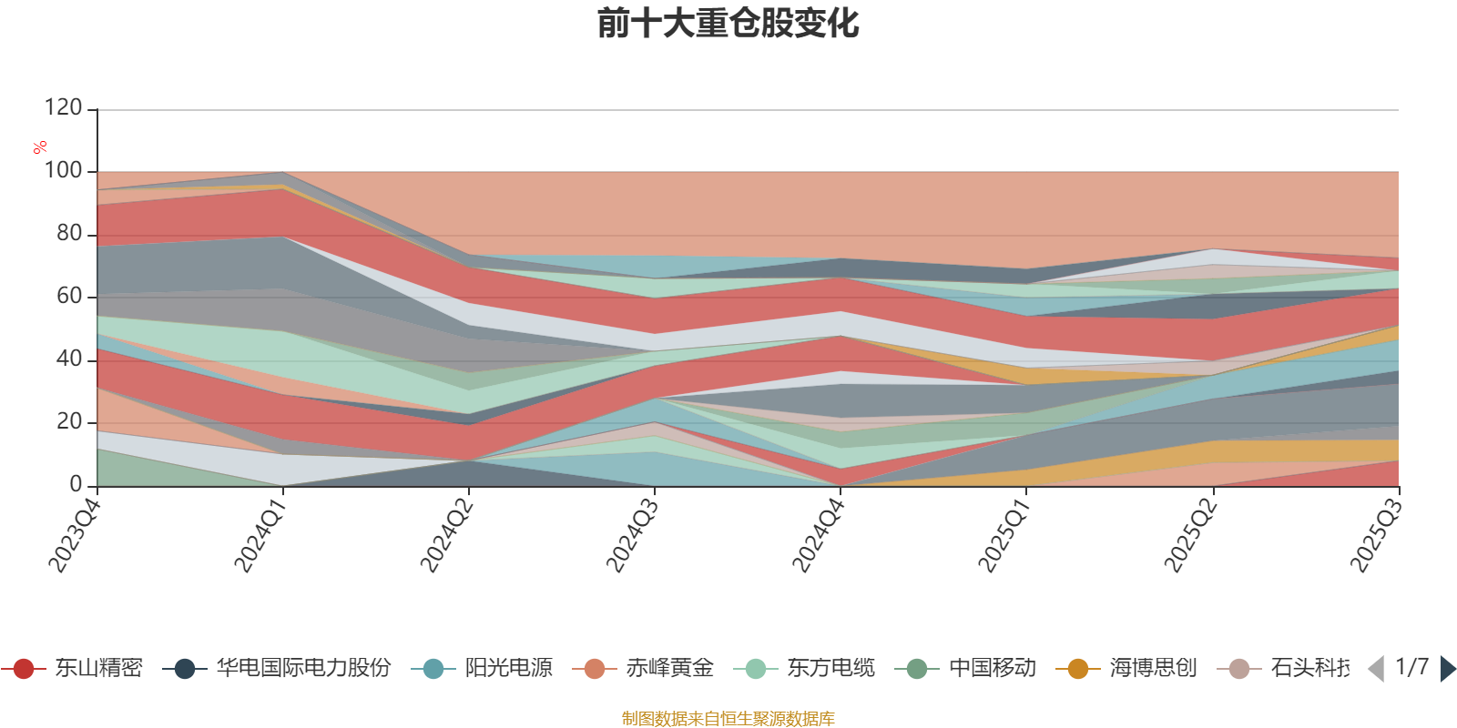 该基金持股集中度较高,近2年前十大重仓股集中度长期超过60%。截至2025年三季度末,基金十大重仓股分别是紫金矿业、思源电气、招金矿业、东山精密、海博思创、阿里巴巴-W、广发证券、杰瑞股份、宇通客车、纽威股份。