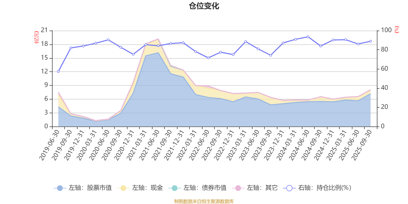 据定期报告数据统计,近三年平均股票仓位为85.85%,同类平均为86.77%。2024年上半年末基金达到93.54%的最高仓位,2019年上半年末最低,为57.31%。