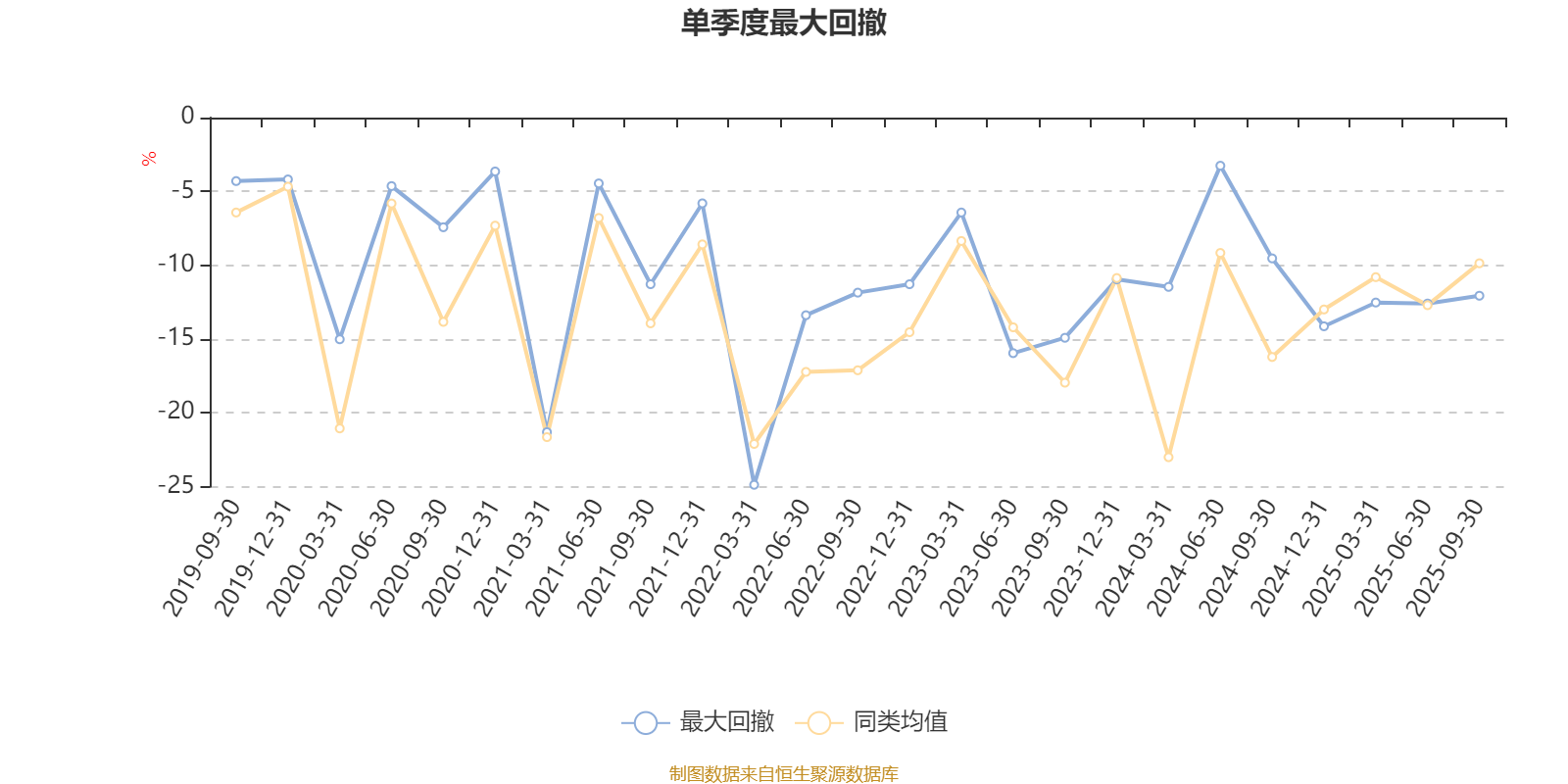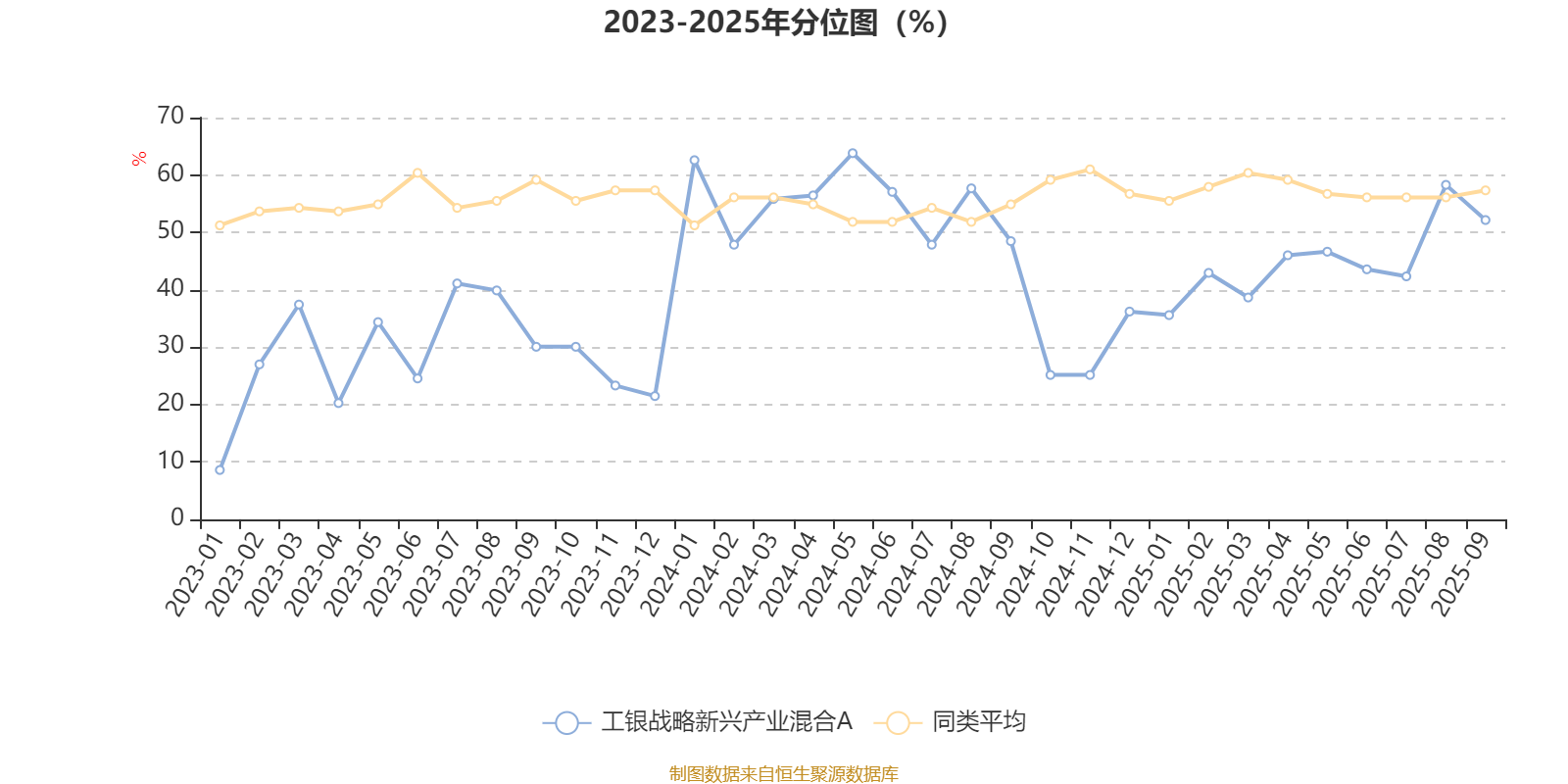 通过所选区间该基金净值增长率分位图,可以观察该基金与同类基金业绩比较情况。图为坐标原点到区间内某时点的净值增长率在同类基金中的分位数。