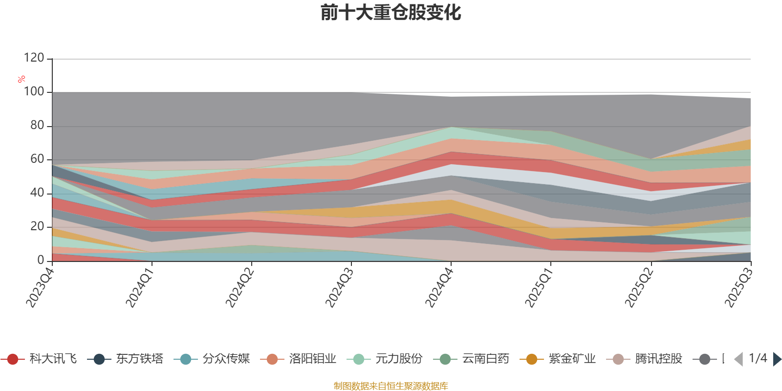 该基金持股集中度较高。截至2025年三季度末,基金十大重仓股分别是伊利股份、申通快递、中国太保、海尔智家、中国人保、瑞丰新材、国药股份、国邦医药、东方铁塔、人福医药。