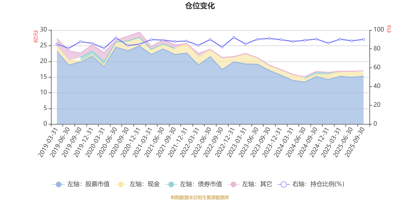 据定期报告数据统计,近三年平均股票仓位为89.2%,同类平均为87.62%。2022年末基金达到92.12%的最高仓位,2020年一季度末最低,为80.54%。