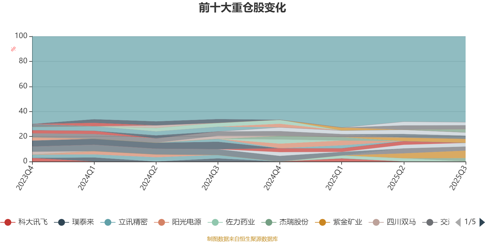 截至2025年三季度末,基金十大重仓股分别是紫金矿业、新华保险、交通银行、中国太保、陕西煤业、杰瑞股份、中国石油、成都银行、华鲁恒升、江苏银行。