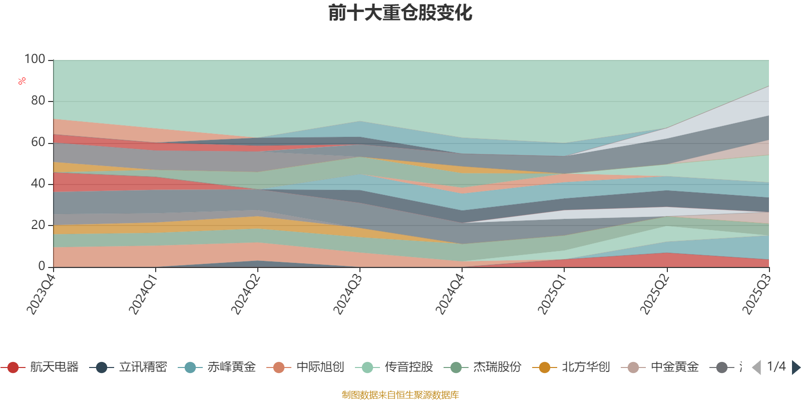 该基金持股集中度较高。截至2025年三季度末,基金十大重仓股分别是山东黄金、山金国际、三一重工、赤峰黄金、徐工机械、西部黄金、山推股份、杰瑞股份、中金黄金、航天电器。
