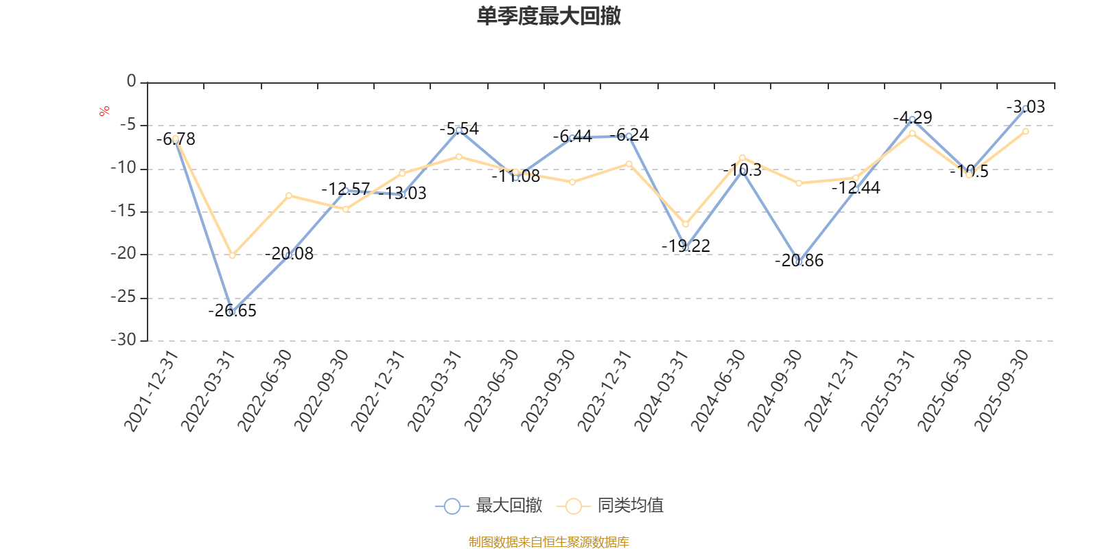 截至10月29日,基金近三年最大回撤为32.18%,同类可比基金排名174/513。单季度最大回撤出现在2022年一季度,为26.65%。