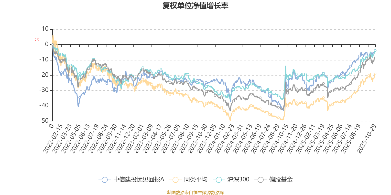截至10月29日,中信建投远见回报A近三个月复权单位净值增长率为7.36%,位于同类可比基金485/621;近半年复权单位净值增长率为26.79%,位于同类可比基金374/621;近一年复权单位净值增长率为24.00%,位于同类可比基金386/611;近三年复权单位净值增长率为28.72%,位于同类可比基金193/518。