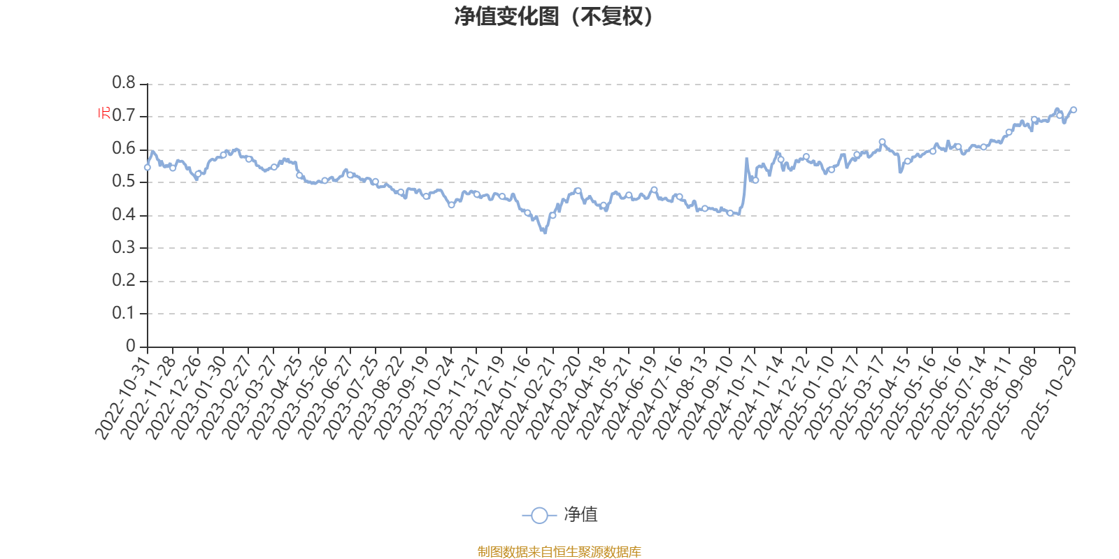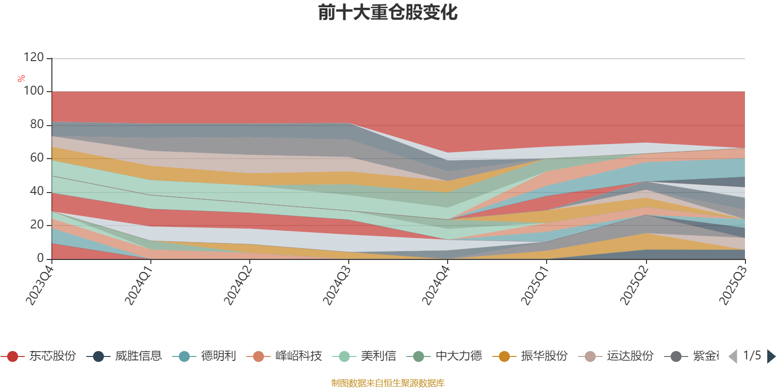 该基金持股集中度较高,近2年前十大重仓股集中度长期超过60%。截至2025年三季度末,基金十大重仓股分别是联德股份、中信博、运达股份、银龙股份、立华股份、新强联、亚钾国际、海力风电、威胜信息、新凤鸣。