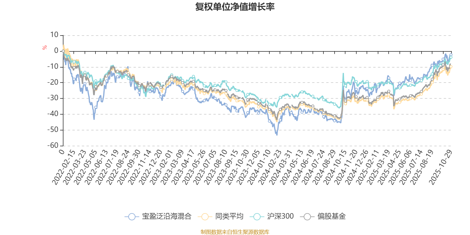截至10月29日,宝盈泛沿海混合近三个月复权单位净值增长率为15.77%,位于同类可比基金125/265;近半年复权单位净值增长率为24.98%,位于同类可比基金173/265;近一年复权单位净值增长率为32.83%,位于同类可比基金113/265;近三年复权单位净值增长率为32.69%,位于同类可比基金83/253。
