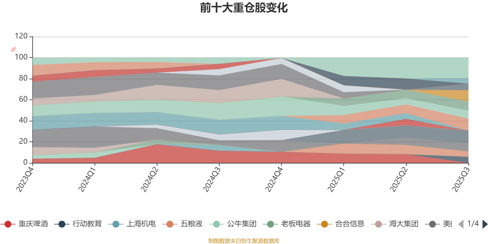 该基金持股集中度较高,近2年前十大重仓股集中度长期超过60%。截至2025年三季度末,基金十大重仓股分别是贵州茅台、泸州老窖、立华股份、海尔智家、美的集团、伊利股份、晨光生物、行动教育、五粮液、温氏股份。
