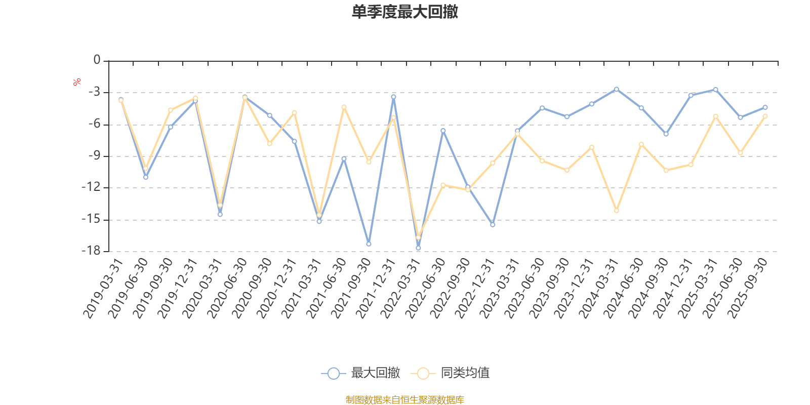 截至10月29日,基金近三年最大回撤为10.39%,同类可比基金排名152/1274。单季度最大回撤出现在2022年一季度,为17.68%。