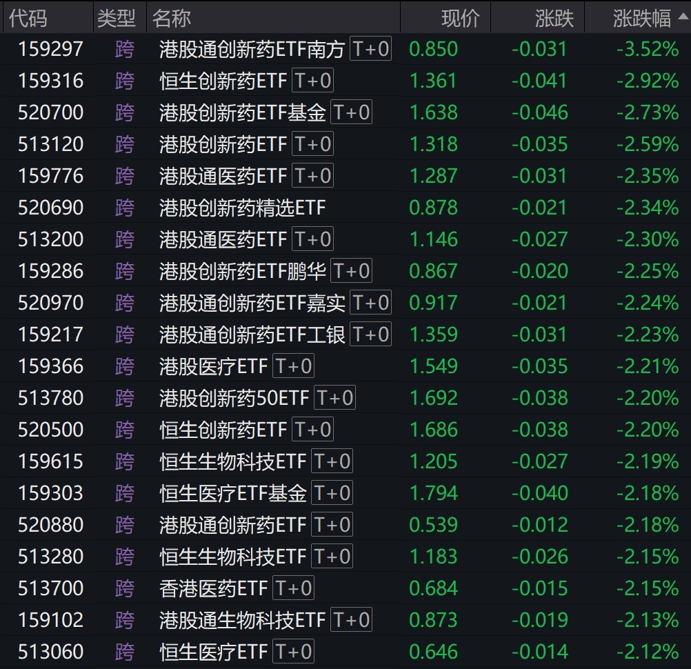港股医药股走弱,港股创新药相关ETF跌超2%