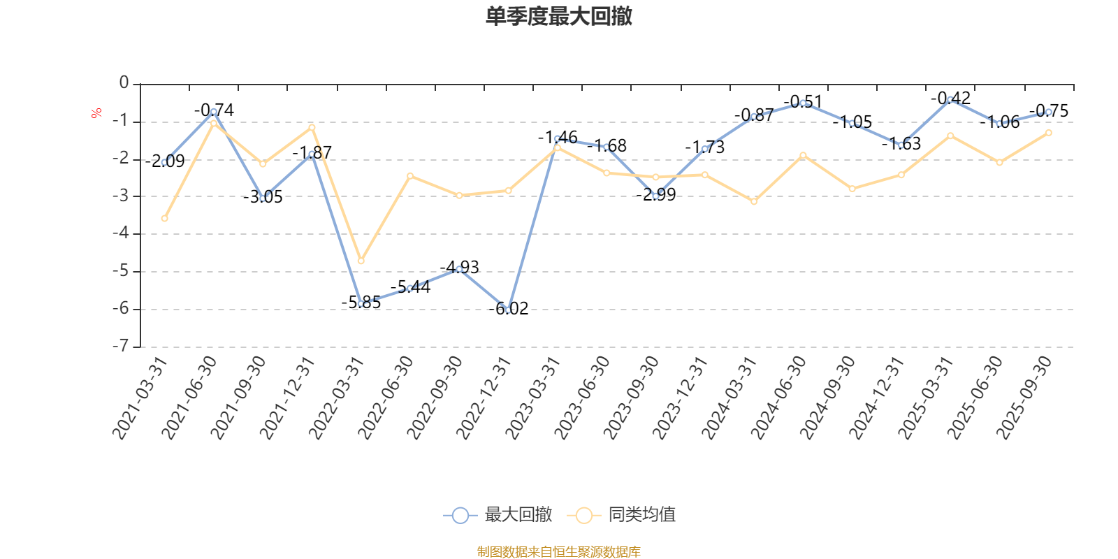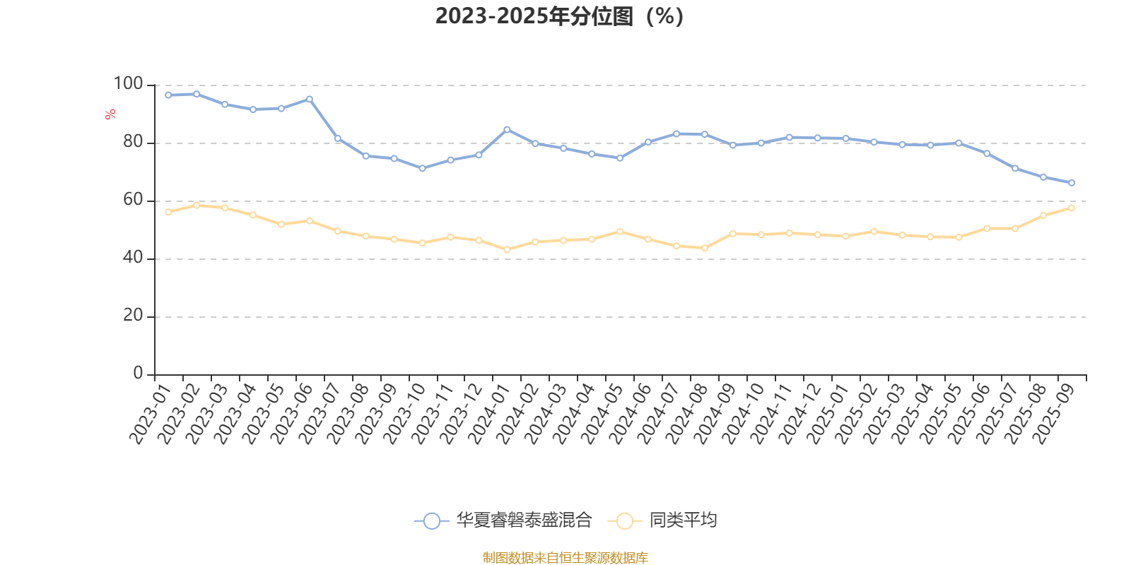 通过所选区间该基金净值增长率分位图,可以观察该基金与同类基金业绩比较情况。图为坐标原点到区间内某时点的净值增长率在同类基金中的分位数。