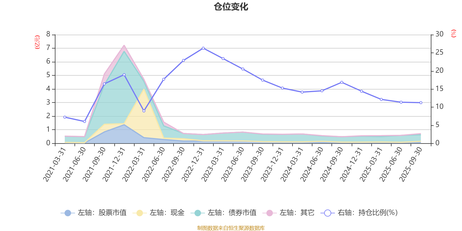 据定期报告数据统计,近三年平均股票仓位为16.46%,同类平均为19.14%。2022年末基金达到26.27%的最高仓位,2021年上半年末最低,为6.04%。