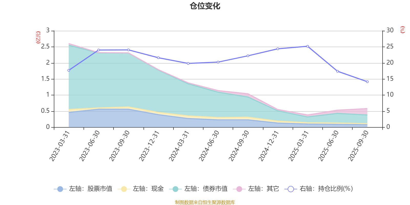 据定期报告数据统计,成立以来平均股票仓位为20.98%,同类平均为19.14%。2025年一季度末基金达到25.17%的最高仓位,2025年三季度末最低,为14.15%。