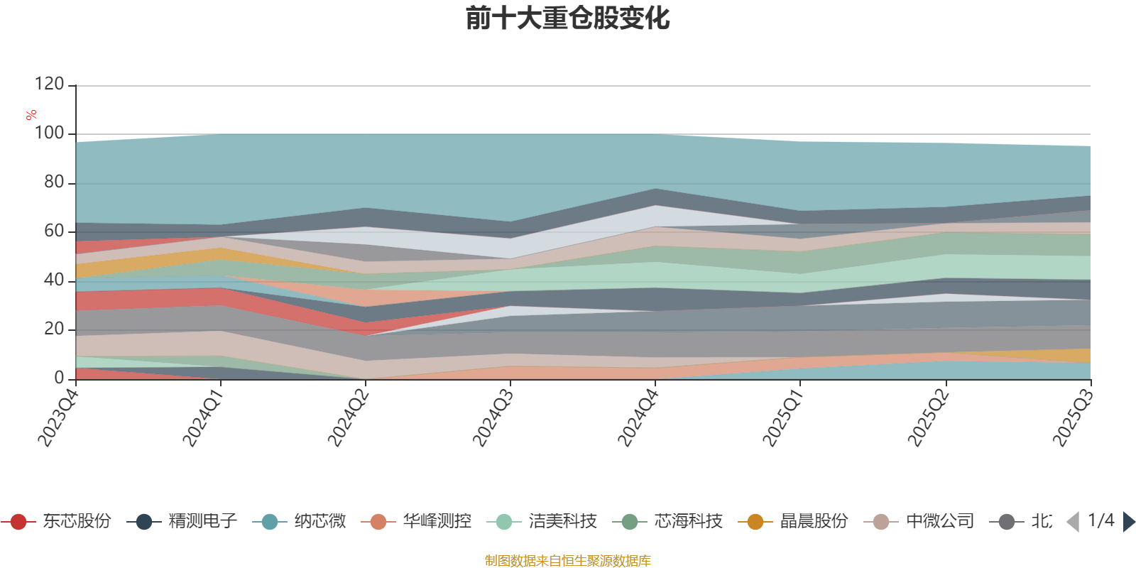 该基金持股集中度较高,近2年前十大重仓股集中度长期超过60%。截至2025年三季度末,基金十大重仓股分别是安集科技、海光信息、北方华创、思特威、寒武纪、纳芯微、兆易创新、晶晨股份、中芯国际、拓荆科技。