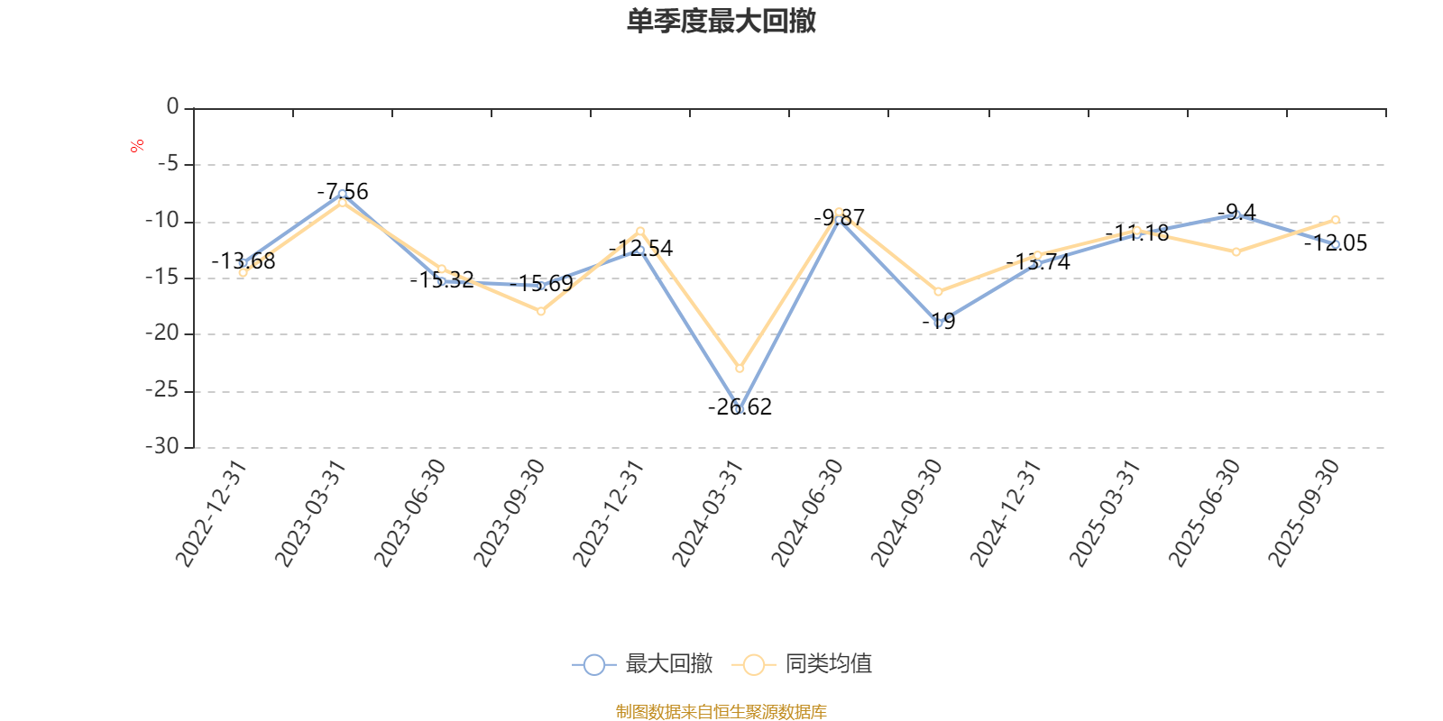 截至10月29日,基金近三年最大回撤为44.23%,同类可比基金排名89/159。单季度最大回撤出现在2024年一季度,为26.62%。
