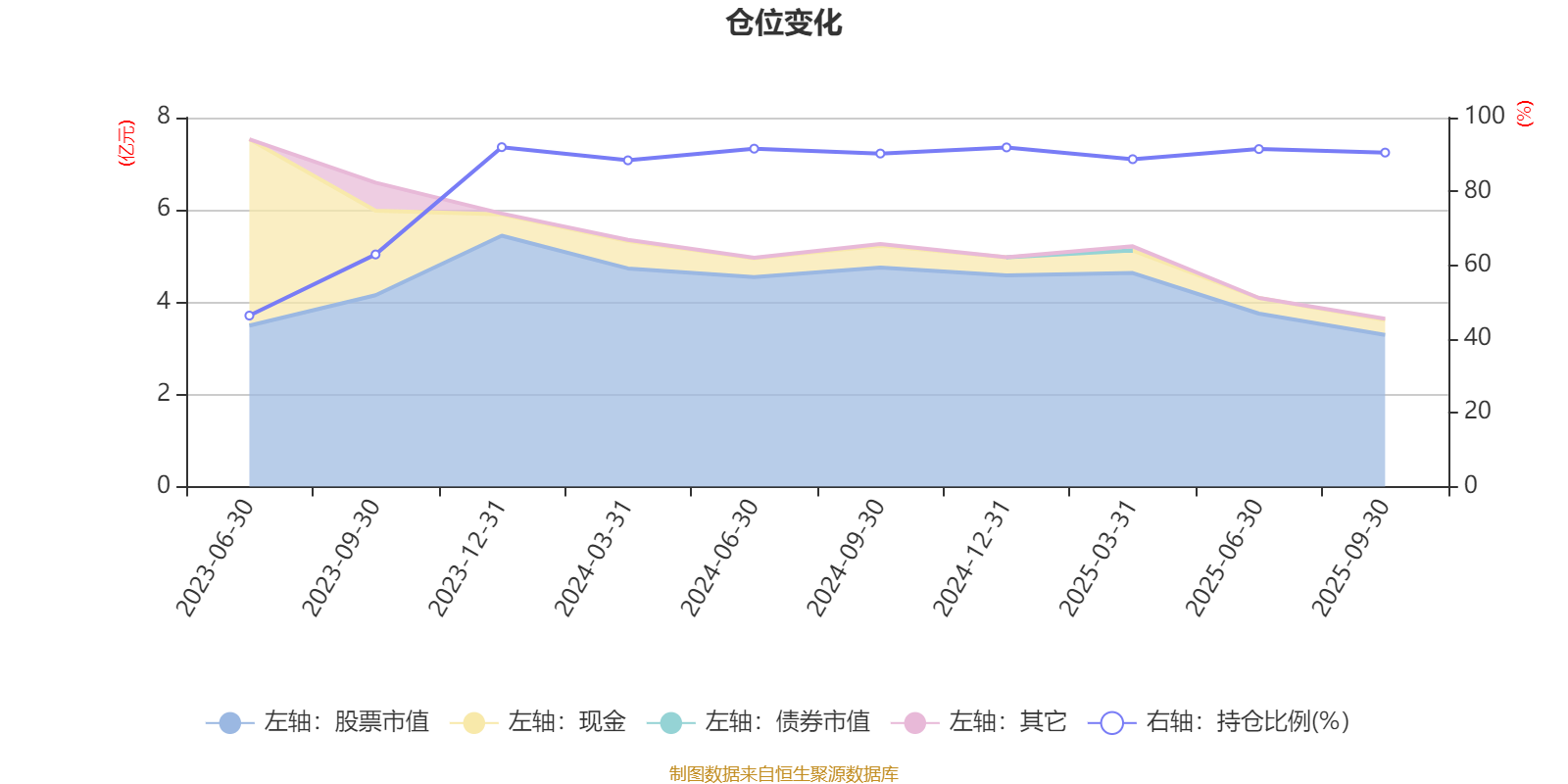 据定期报告数据统计,成立以来平均股票仓位为83.41%,同类平均为87.09%。2023年末基金达到91.99%的最高仓位,2023年上半年末最低,为46.34%。