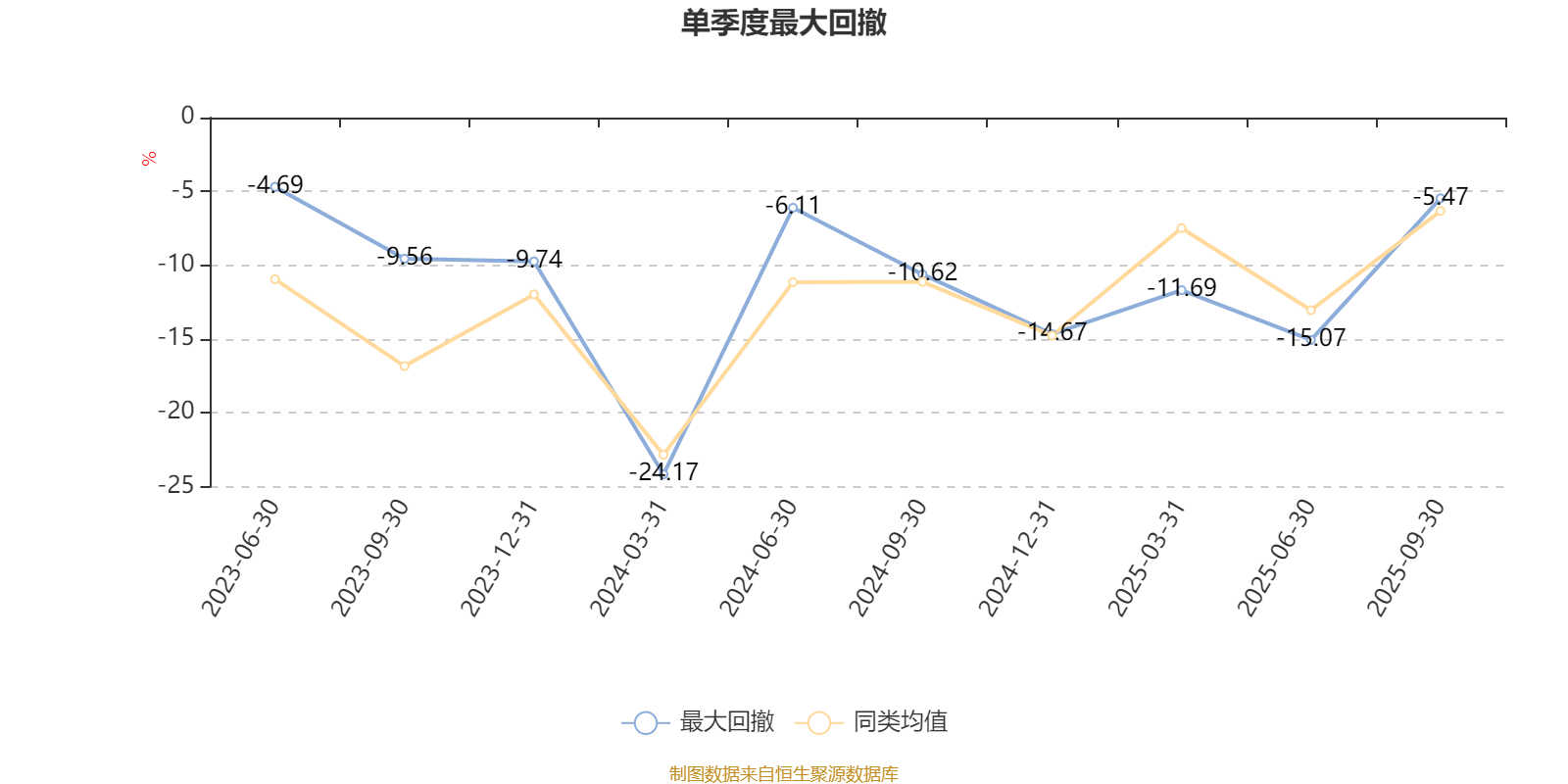 通过所选区间该基金净值增长率分位图,可以观察该基金与同类基金业绩比较情况。图为坐标原点到区间内某时点的净值增长率在同类基金中的分位数。