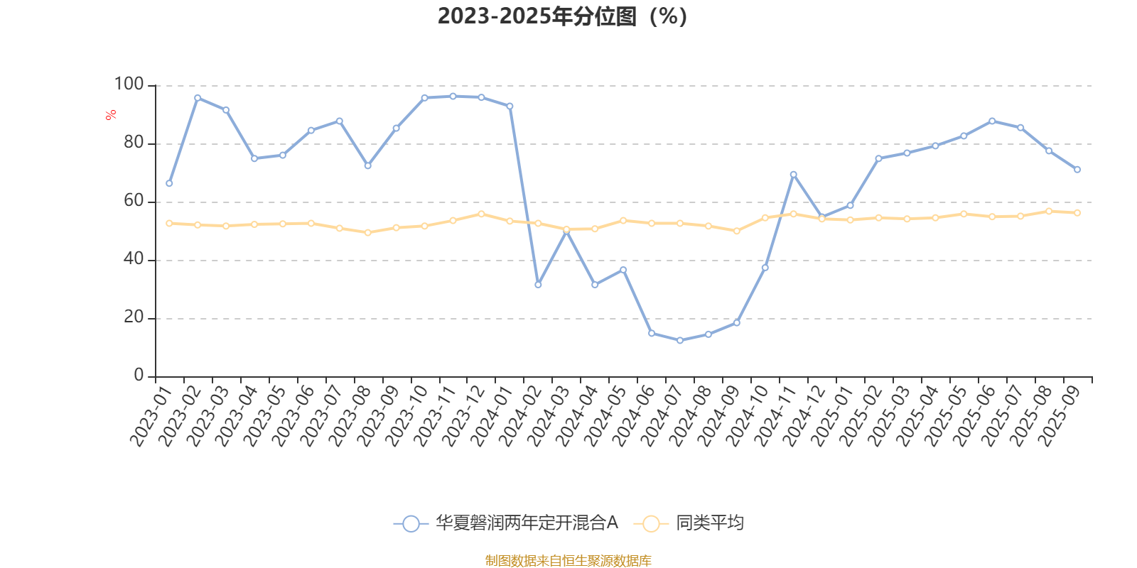 通过所选区间该基金净值增长率分位图,可以观察该基金与同类基金业绩比较情况。图为坐标原点到区间内某时点的净值增长率在同类基金中的分位数。