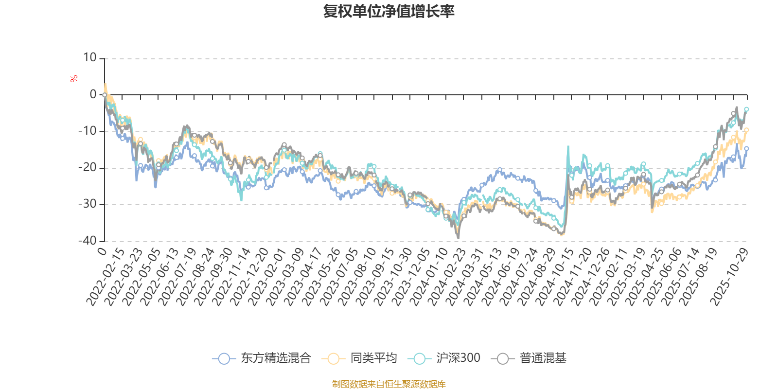 截至10月29日,东方精选混合近三个月复权单位净值增长率为12.04%,位于同类可比基金62/134;近半年复权单位净值增长率为16.35%,位于同类可比基金85/134;近一年复权单位净值增长率为6.62%,位于同类可比基金119/130;近三年复权单位净值增长率为15.90%,位于同类可比基金72/119。