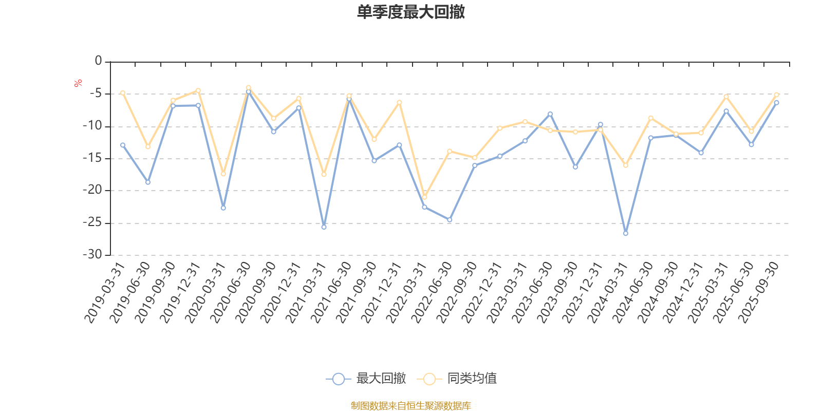 截至10月28日,基金近三年最大回撤为45.25%,同类可比基金排名156/177。单季度最大回撤出现在2024年一季度,为26.63%。