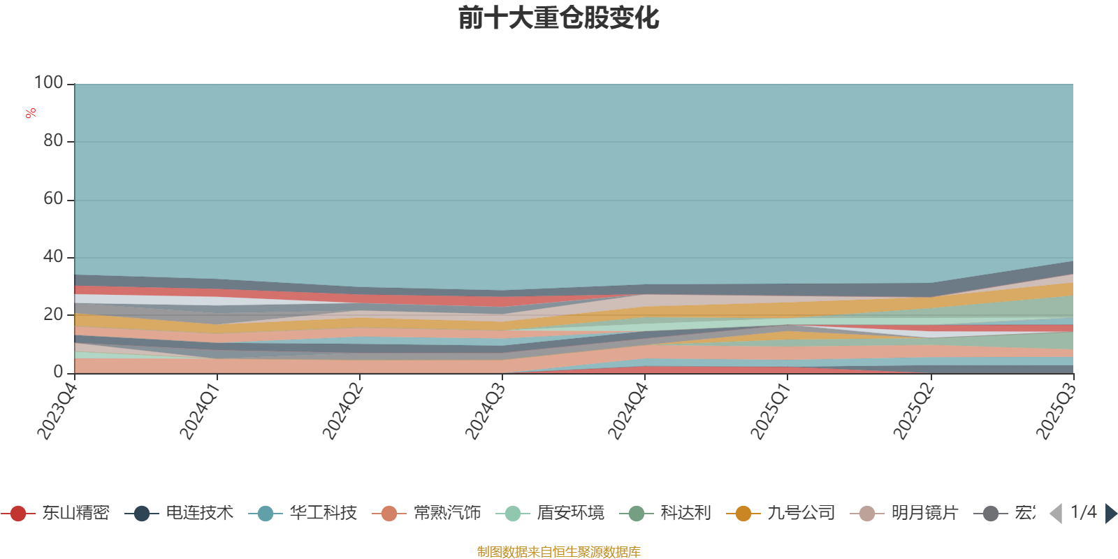 截至2025年三季度末,基金十大重仓股分别是源杰科技、科达利、翱捷科技、七一二、英维克、华工科技、电连技术、常熟汽饰、南网科技、航宇科技。