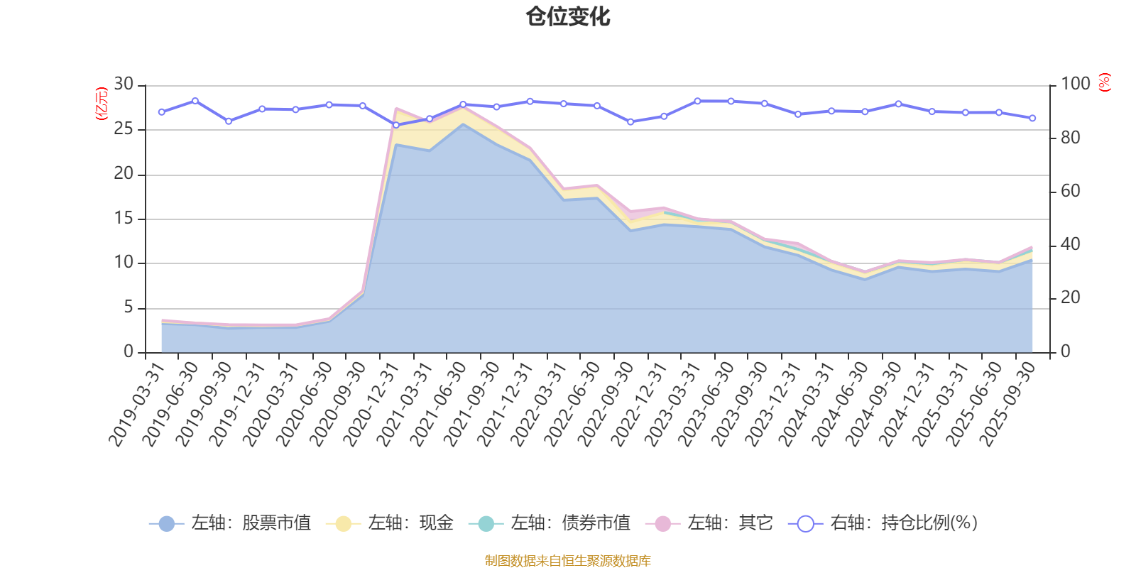 据定期报告数据统计,近三年平均股票仓位为90.81%,同类平均为87.62%。2019年上半年末基金达到94.15%的最高仓位,2020年末最低,为85.08%。